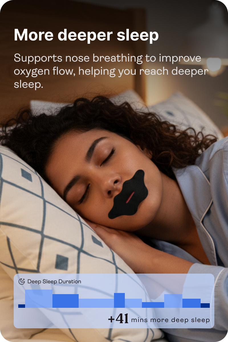 Mouth tape encourages nasal breathing while you sleep, which can help reduce snoring and improve sleep quality. By keeping your mouth closed, it prevents dry mouth and bad breath, while promoting better oxygen flow for a more restful night. If you’re struggling with poor sleep, mouth tape is a simple yet effective solution.