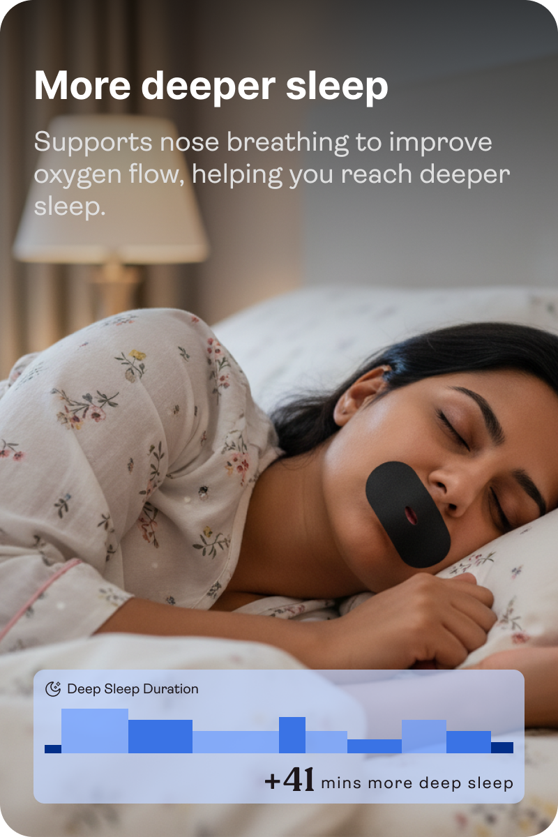 Mouth tape keeps your mouth closed, ensuring that you breathe through your nose rather than your mouth. Since mouth breathing can contribute to snoring, nasal breathing reduces throat vibrations, which means less snoring. Our mouth tape is perfect for anyone looking to reduce nighttime disturbances and sleep more soundly.