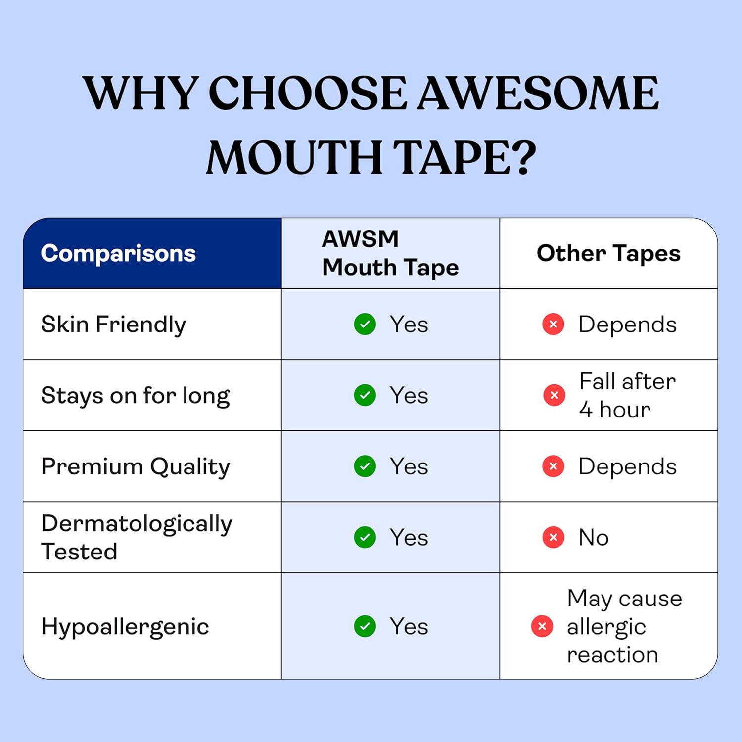 Awesome Mouth Tape™ gently trains you to breathe through your nose, helping you sleep deeper, reduce puffiness, and wake up truly refreshed — no pills, no machines, just better sleep through better breathing.