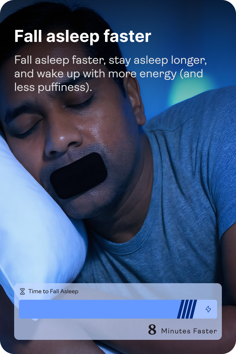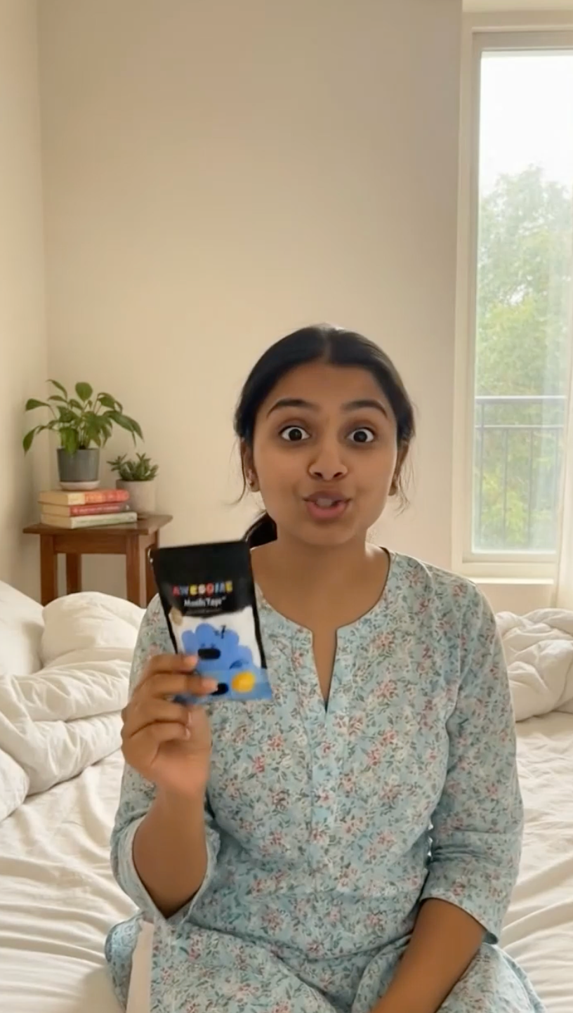 Awesome Mouth Tape™ gently trains you to breathe through your nose, helping you sleep deeper, reduce puffiness, and wake up truly refreshed — no pills, no machines, just better sleep through better breathing.